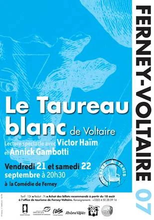 En compagnie d’Annick Gambotti (La Valse du hasard, Ay Carmela, Célimène et le cardinal…), il revient sur l’un des contes orientaux les plus savoureux de Voltaire Le Taureau Blanc, « traduit du syriaque par Monsieur Mamaki, interprète du roi d’Angleterre pour les langues orientales ».