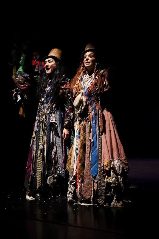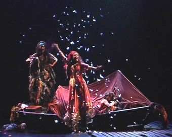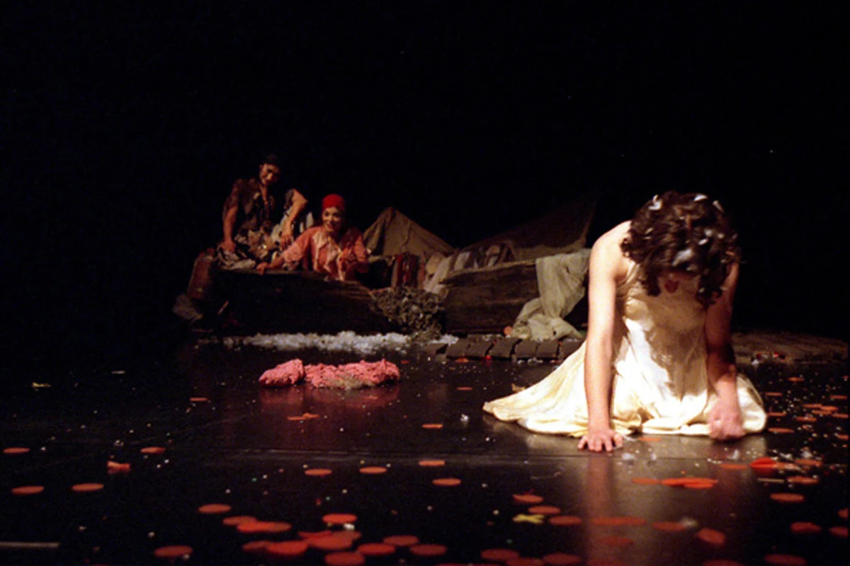 Près d’une barque échouée, deux bohémiennes retiennent captive la jeune Erendira, une orpheline frappée d’un profond sommeil. C’est dans cette ambiance feutrée, propice au récit intimiste, que l’histoire réelle et fantastique du village de Macondo va être révélée. Animées d’une présence flamboyante, les comédiennes glissent allégrement du monde des vivants à celui des morts. Ce qui pourrait n’être que tragédie, se teinte d’humour et de poésie, aux confins des rêves et de la réalité