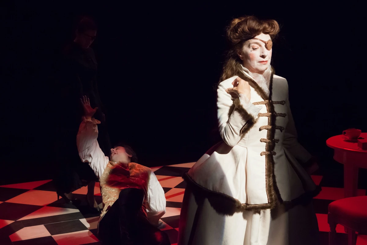 Dans son Entretien d’un philosophe avec la Maréchale de … si proche de l’écriture théâtrale paru en 1776, Diderot aborde la religion en philosophe décomplexé, ennemi des superstitions, défenseur libre de la Raison, face à un pieux faire-valoir incarné par une dévote d’un autre âge. Deux siècles ont passé et sous la plume du philosophe Alain Guyard, la Maréchale a pris corps. Le quasi monologue d’origine cède la place à une authentique dispute philosophique. Naguère triomphant, le philosophe incarné par François Bourcier (Lettres de délation, Résister c’est exister…) se voit remis en cause dans ses tendres utopies rousseauistes et d’honnête matérialiste. Devenue cynique, hédoniste, ambigüe, la Maréchale interprétée par Annick Gambotti (Noces, Le Roi se meurt…) transforme le libertinage en grand art, ironie, dissimulation sensuelle des âmes plus encore qu’offrande facile des corps. D’elle, Alain Guyard et François Bourcier disent qu’elle a assez lu pour rire de la déesse Raison, et assez joui pour comprendre que tout visage dénué de masque est celui de la mort, et que le masque sans visage reste la dernière élégance de la vie.