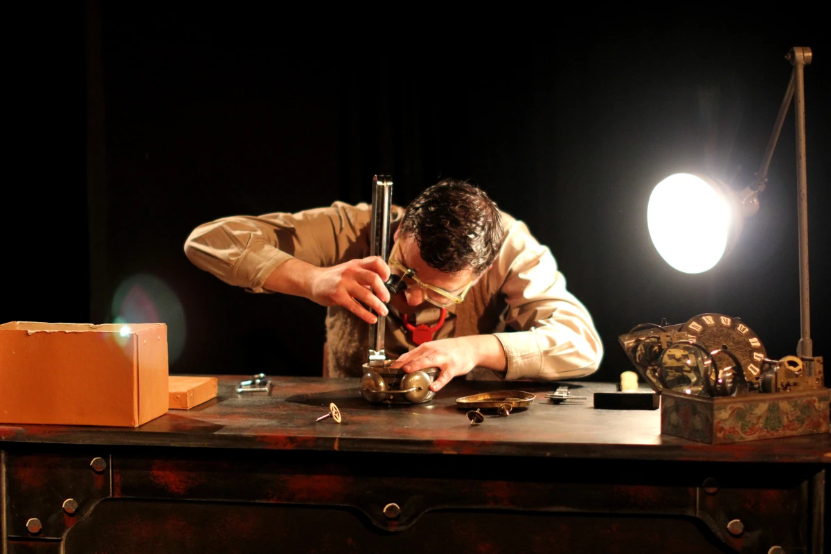 Filmund est un homme comblé, passionné, créatif, et vivant selon lui dans une juste harmonie. Filmund est un horloger prestigieux. À son établi, il répare et crée des horloges. Au décès de sa mère, Filmund reçoit, comme unique héritage, une vieille boîte à musique. Cette boîte inaccessible et interdite a accompagné les pas de l’enfant peureux qu’il était. Maintenant qu’il se retrouve seul et libre, il peut enfin s’aventurer à ouvrir la boîte mystérieuse. L’univers TIK TAK est précis, rythmé, touchant, dérangeant. L’humour, parfois cynique, propose l’histoire de la vie d’un homme généreux, maladroit et naïf et d’une femme douce, aimante, possessive et prête à tout pour conquérir l’être tant désiré. Les thèmes de l’amour, de la passion, de la trahison, du temps sont brillamment traités par les deux personnages clownesques sortant tout droit d’un conte de fée peu commode. Cette histoire est l’histoire de tous, grands et petits. Une histoire abordée de façon burlesque, poétique et … Magique …